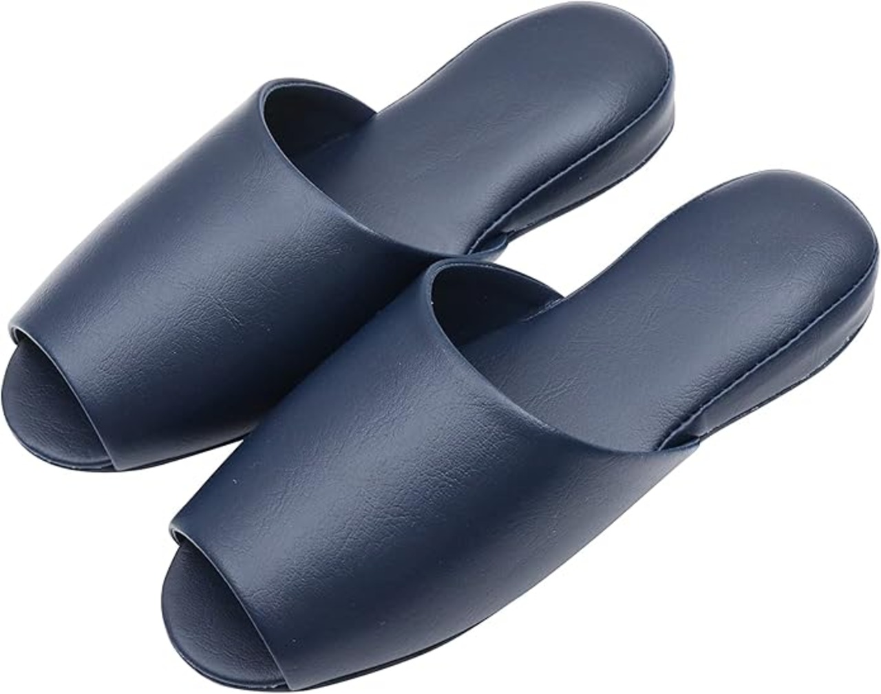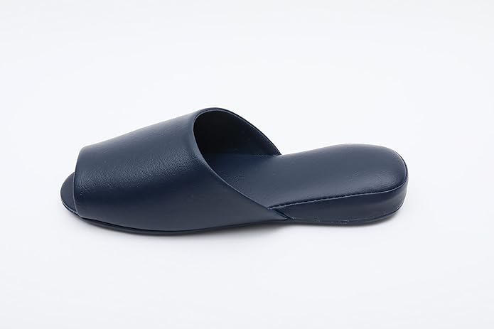 通気性に優れた、蒸れにくい前開きタイプのレザー調スリッパ。職人さんこだわりのしっかりとした作りで、耐久性にも優れています。また、底面の圧着式製法により、糸ほつれの心配もございません。