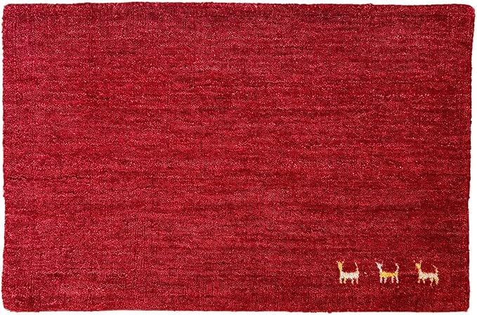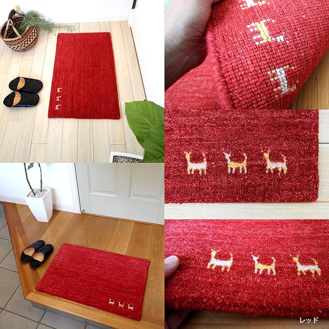 ギャベ ギャッベ 玄関マット 70 45cm 長方形 おしゃれ ウール100% インド (レッド)