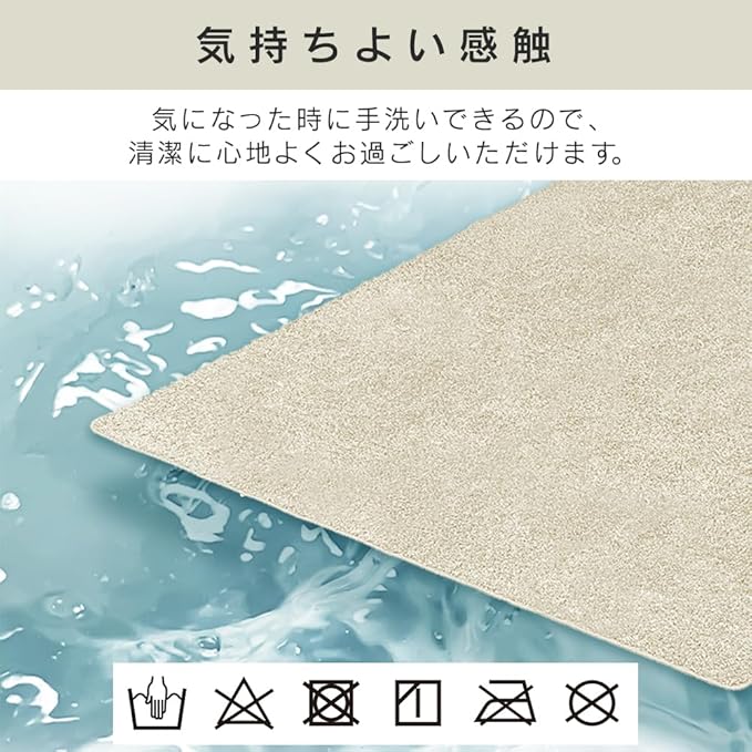 このラグマットは洗濯機で洗うことができますが、高温で乾燥することは避けてください。また、火気や開いた火元から遠ざけておくようにしてください。