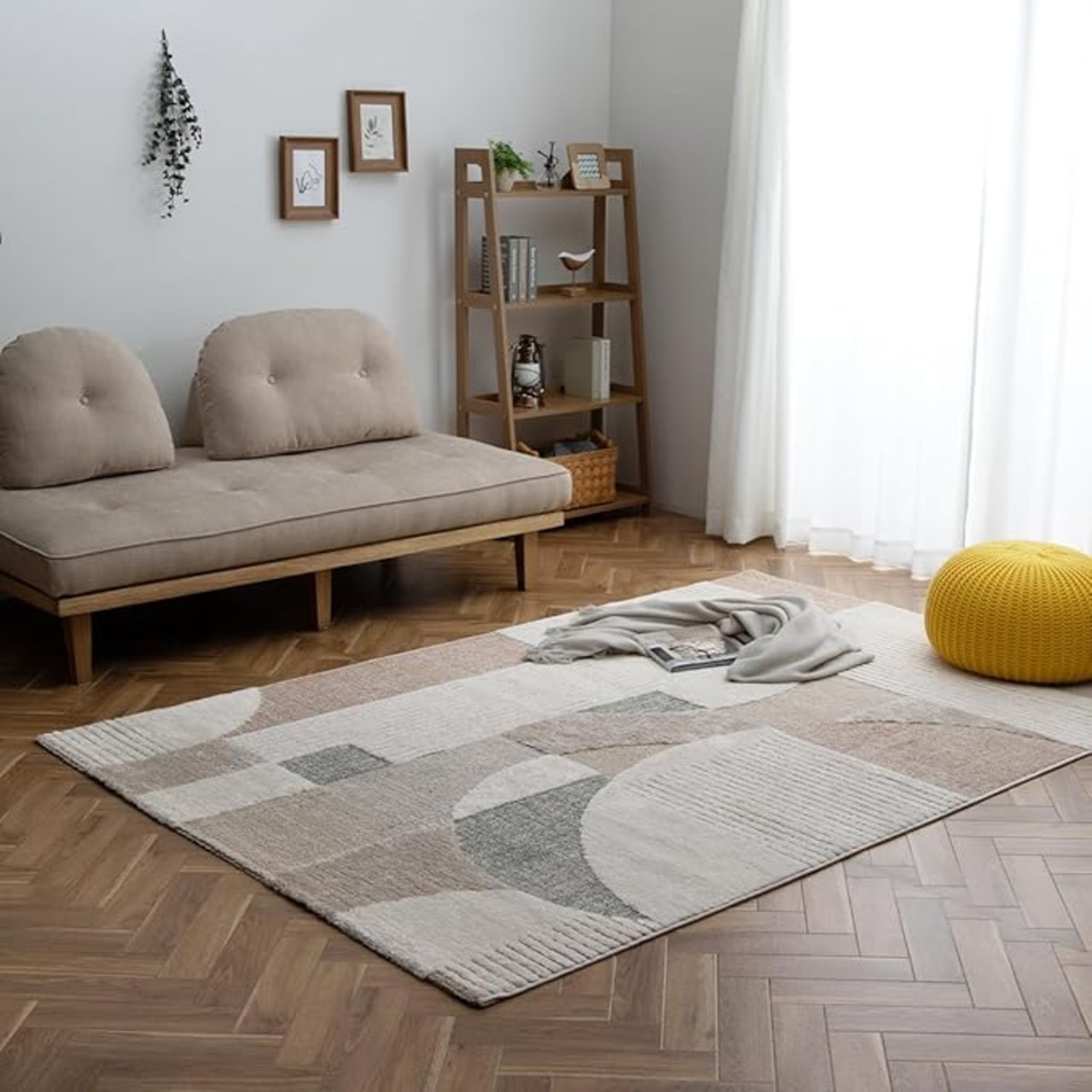 ニュアンスカラーで幾何学模様を描いたウィルトンラグ。北欧スタイルなど、色々なテイストに合わせやすいデザインです。