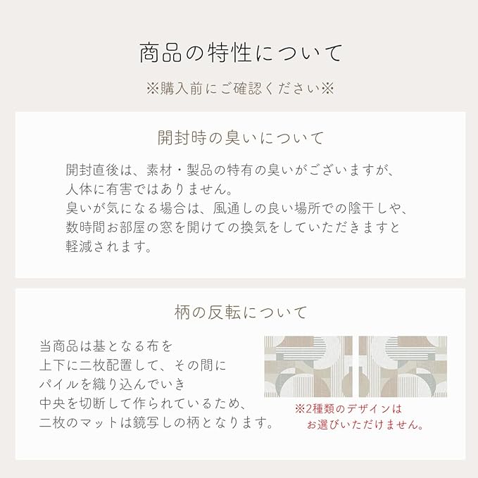 【お手入れ方法】洗濯不可。部分的に汚れたときは、市販のカーペットクリーナー、または中性洗剤(色落ちしないか確認のうえ)を薄く溶かしたぬるま湯で毛並みにそって布拭きして下さい。その後濡れたタオルなどで速やかに拭きとって下さい。※漂白剤は使用しないで下さい。