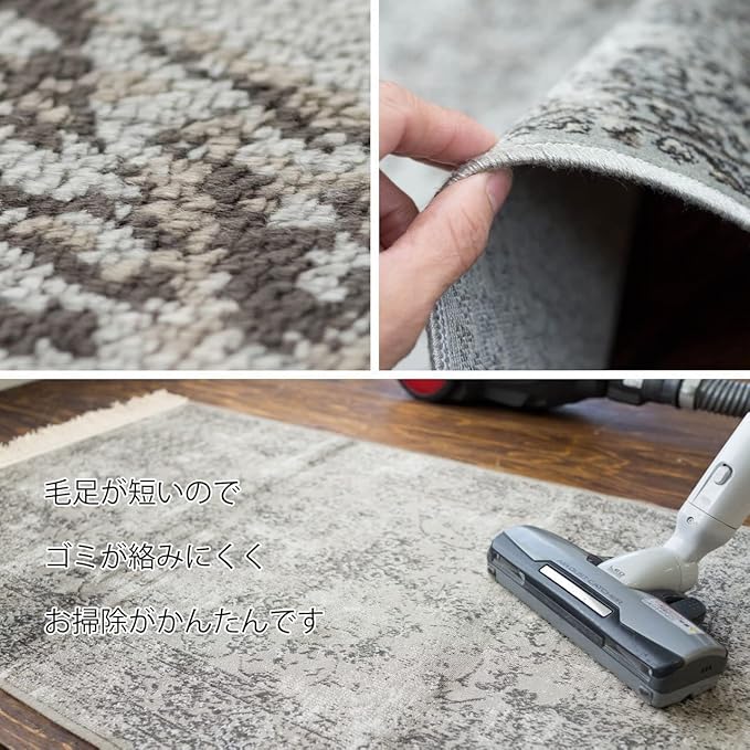 【輸入カーペットを安心してご利用いただくためのお願い】 ●輸入ラグに関して ※同じ商品でも製造ロットの違いによって、サイズや、色味、柄模様の左右が反転していたり、位置がズレている場合がございます。ただし、現地の工場や倉庫での検品をクリアした商品を輸入しています。あらかじめご了承くださいませ。/ ●においに関して ※ご使用当初、裏面に塗られる仕上げの接着塗料(ラテックス剤)のにおいがする場合がございます。人体への影響はありませんが、においに敏感の方や、ご心配の方はご理解の上ご購入お願いいたします。開封後常温のもとで気化(蒸発)するため、においはご使用につれてなくなります。気になる場合は風通しの良いところで陰干ししていただきますと、より早く解消されます。/ ●サイズに関して ※カーペットの製法上、表示サイズより0~3%の誤差がございます。/ ※いずれも商品の初期不良ではございませんので返品・交換は行なっておりません。(※お客様で返品の送料ご負担によるキャンセルは、返品規定に基づきお受けさせていただきます。)/ ※裏面の製品シールは剥がさないでご使用ください。