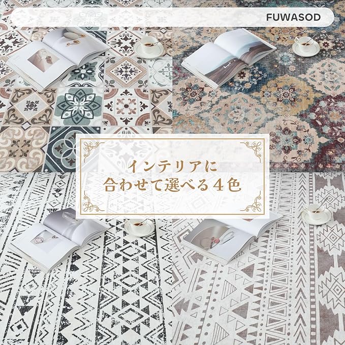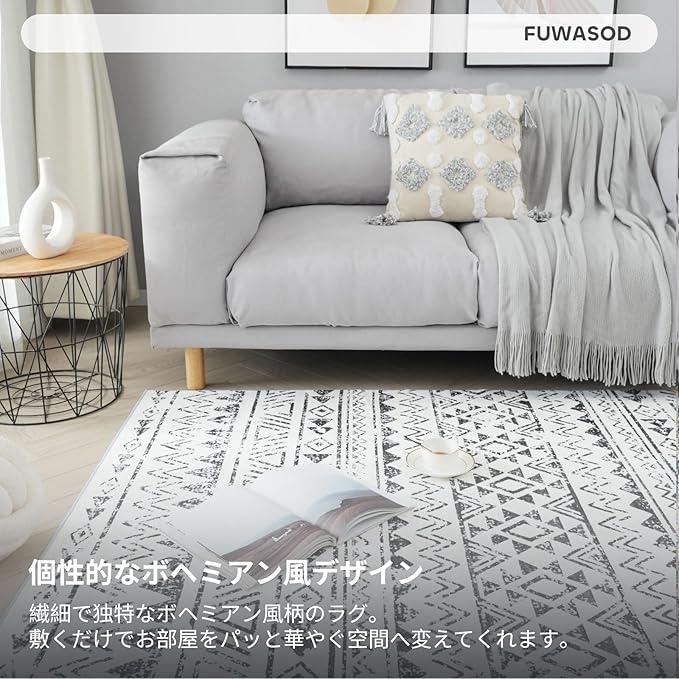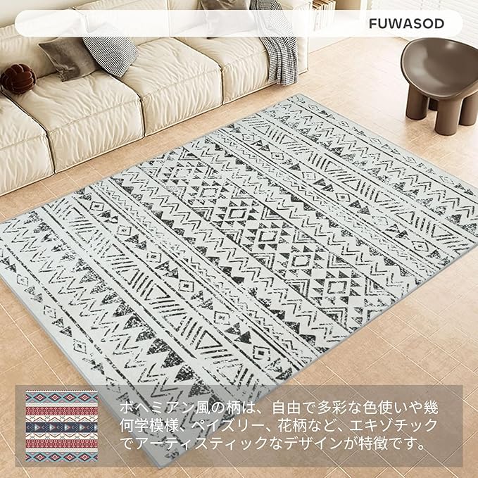 【ボヘミアンデザイン】ボヘミアン風の柄は、自由で多彩な色使いや幾何学模様、ペイズリー、花柄など、エキゾチックでアーティスティックなデザインが特徴です。繊細で美しい柄のボヘミアン柄のラグを一枚敷くだけで、お部屋をパッと華やぐ空間へ変えてくれます。リビングルーム、ベッドルーム、キッチン、玄関など様々なシーンで活躍いただけます。