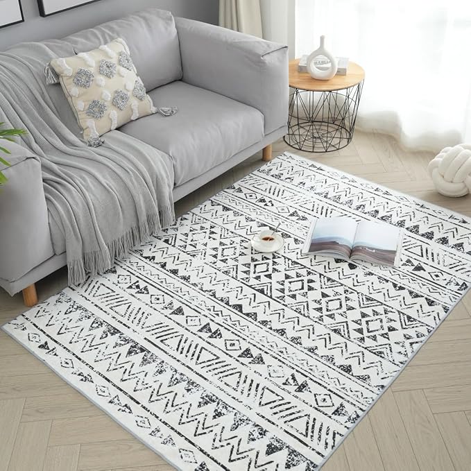 カーペット ラグ マット ペルシャ風 絨毯風 花柄 オールシーズン適用 ボヘミアン柄 滑り止め付き 寝室 リビング 玄関マット 地毯 じゅうたん 洗える 防音マット 防ダニ 防臭 (柄C, 120 160cm)