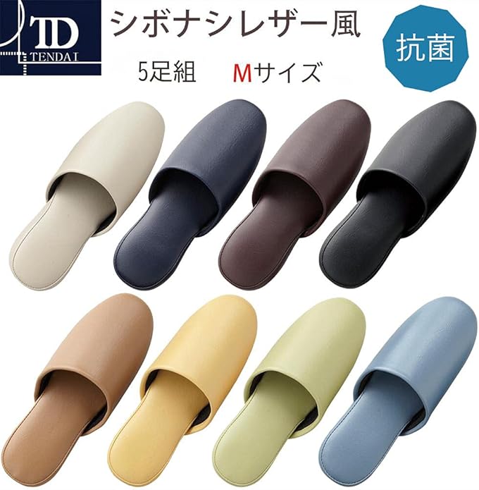 [TENDAI] シボナシレザー風スリッパ / 5足セット / 子供(XXs)M, L/抗菌 業務用 まとめ買い お客様用 室内 来客用 水拭き 清潔 お手入れ簡単 施設用 ルームシューズ トイレスリッパ ビニール 滑り止め レザー風スリッパ