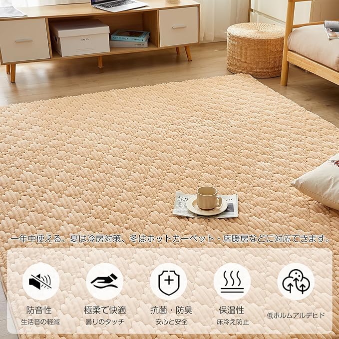 【お手入れが楽々】お手入れラクラク毛足が短いので、日々のお手入れは掃除機で完了。ホコリや毛も簡単に除去できます。洗濯機で丸洗いOKなので、汚れても安心。型崩れしにくく、いつでも清潔で心地よい状態を保てます。