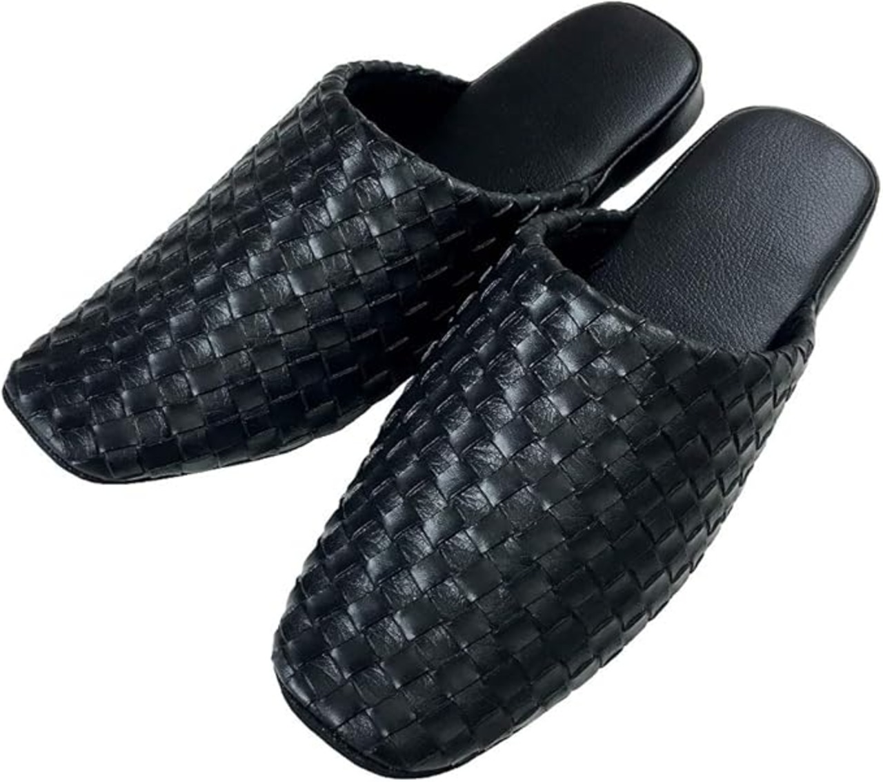 【ブラック】Lサイズ/合成皮革 スリッパ テクセレ メッシュ編込み風デザイン 抗菌 【M+home】