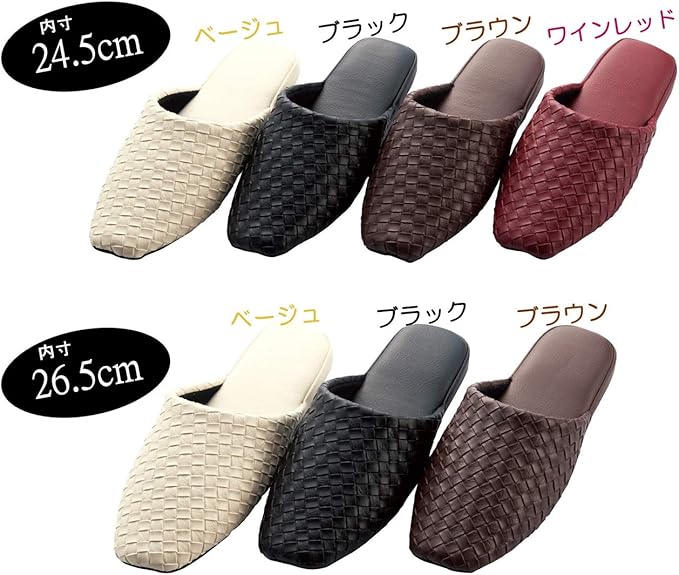 編みこみ模様の合皮スリッパ。シンプルなデザインで来客用や男性の方にもおすすめです。銀系の抗菌剤を練りこんでおり、抗菌作用があります。また、甲と中板には鉛やカドミウムを使用しない環境に優しいPVC素材を使用。足裏への負担を和らげる高反発ウレタンを中板内部に使用しています。