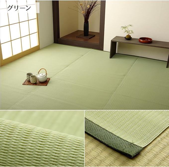 【仕様】サイズ:江戸間3畳(約174 261cm) 、原産国:日本製(純国産)、素材:ポリプロピレン100%。ポリプロピレンとはプラスチックのひとつで軽くて傷がつきにくい丈夫な素材です。細いストロー状のポリプロピレンを、い草花ござと同じ要領で織り上げた汚れに強いカーペットです。