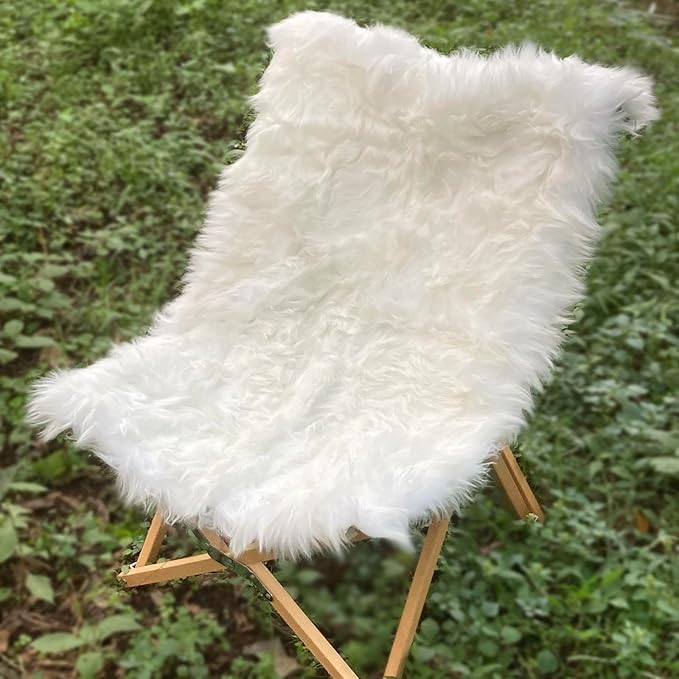 アウトドアやキャンプなどの椅子に使えるふわふわしたフェイクムートンラグです。