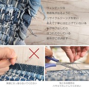 ■床暖房の上敷き、ホットカーペットカバーに対応。折りたたみ可能。 (※商品写真は50x80cmを使用しております。)/デニム生地の切れ端を使用しておりますため、商品により材質(デニムの装飾品・糸屑・糸玉)などが入っている場合がございます。 また開封時にシリカゲルが入っている場合がございますので、ご確認の上ご使用ください。/一点一点手作業で作る為に織りムラや歪みなどを感じることがあると思いますが、これもハンドメイドの味わいですので、ご理解くださいませ。/洗濯時に色落ちする場合がございますので、漂白剤及び漂白剤入りの洗剤のご使用は避け、他の物と分けて単独でお洗いください。洗濯で縮みますのでご注意ください。/完全に乾いた状態でご使用ください。/デニム素材となりますので摩擦や水濡れ、汗によって色が移る・色が落ちる可能性がございます。/ご了承の上、ご購入ください。