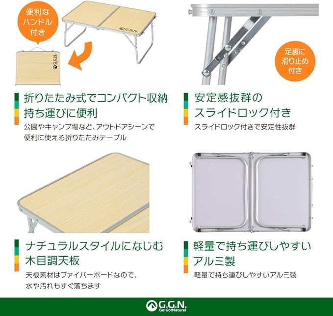 【Amazon.co.jp限定】ジージーエヌ(G.G.N.) アウトドアテーブル60-40cm コンパクト 軽量 GN02CM021