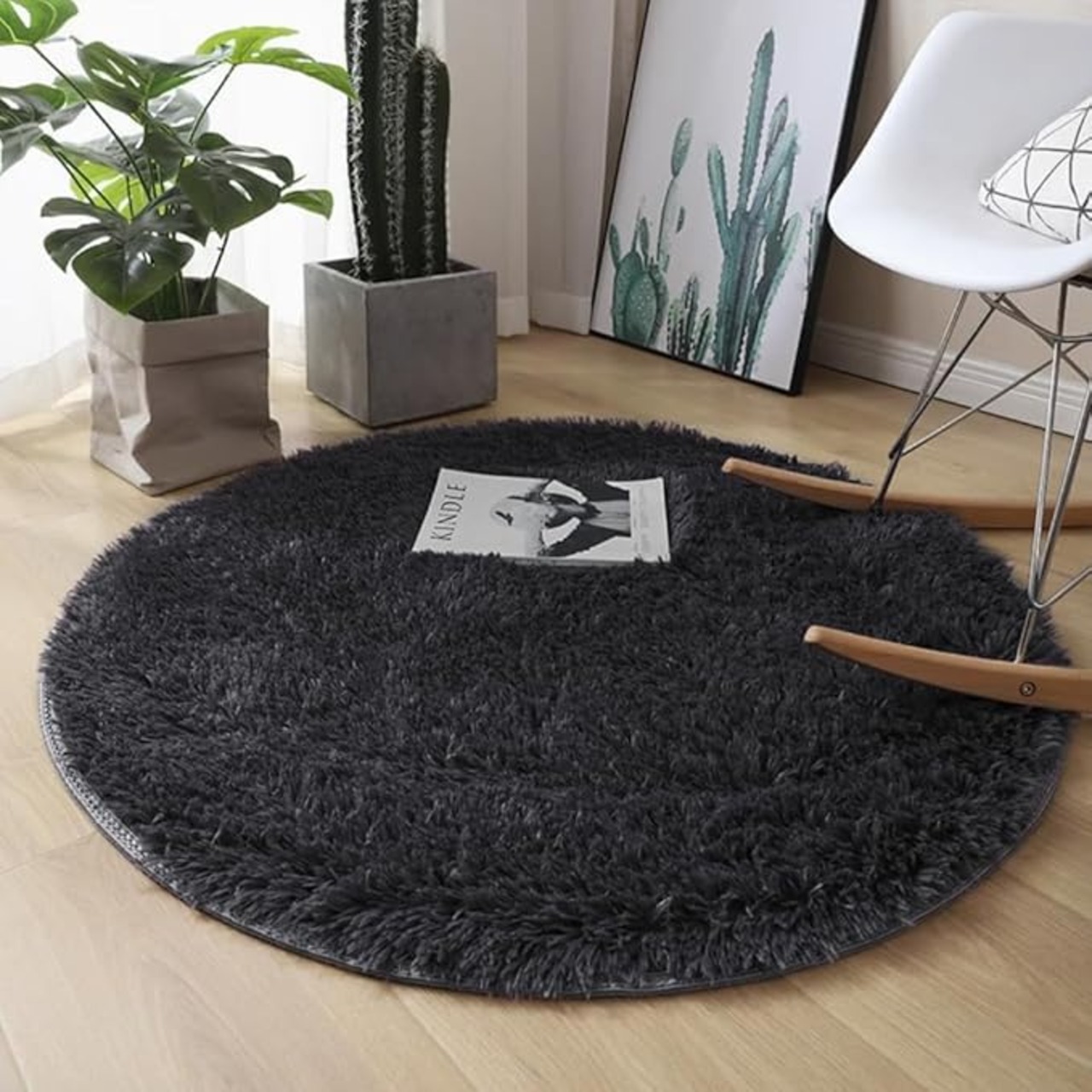 ラグ ラグマット【低反発&新型抗菌防臭加工&6機能すべて強化の進化モデル】 円形 100x100 厚手 全厚約5cm 毛足約4cm洗える 防音 耐熱 静電気防止 北欧風 ペルシャ調 冬用 極厚 滑り止め付 ふわふわ触感(ブラック,約0.6畳 )