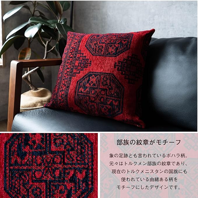 サヤンサヤン ケラー ボハラ クッションカバー ラグ 45 45 レッド ゴブラン織