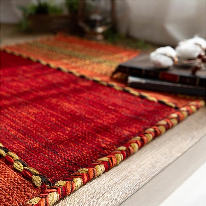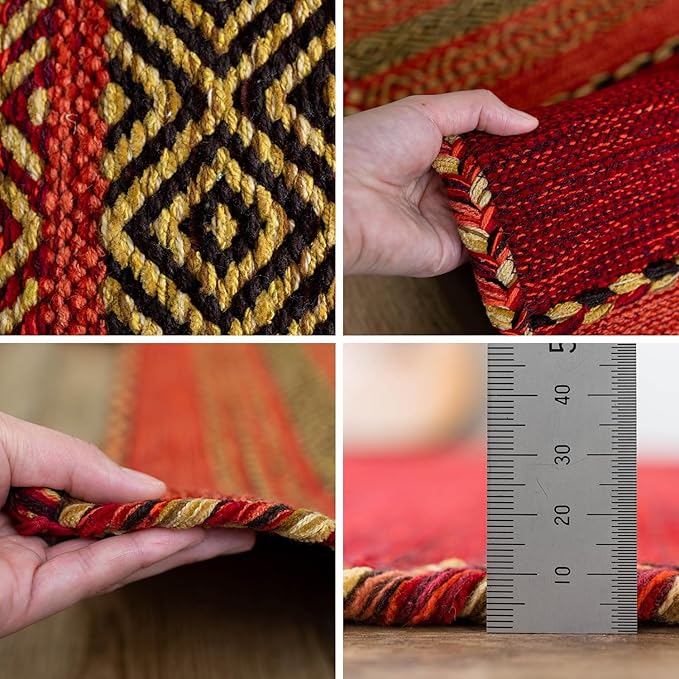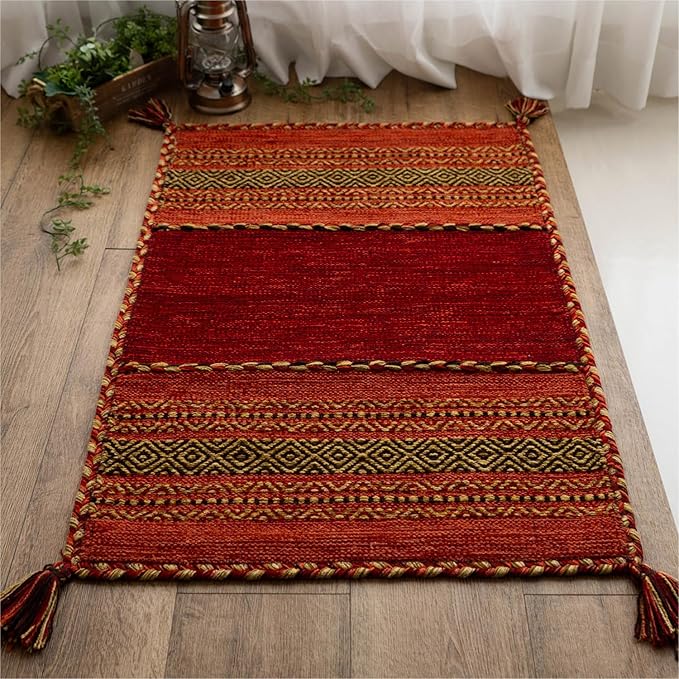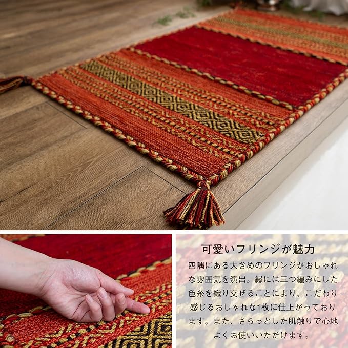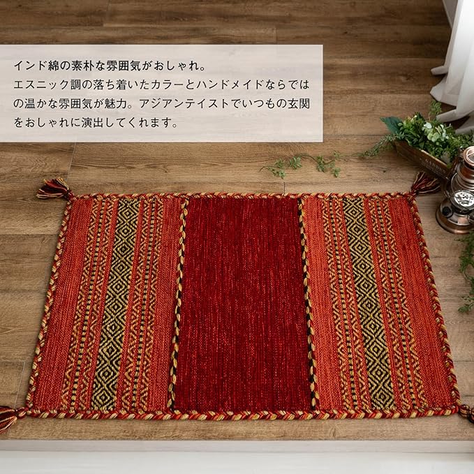 サヤンサヤン 手織り 幾何学模様 アジアン 玄関マット 屋内 室内 インドキリム 50x80 レッド
