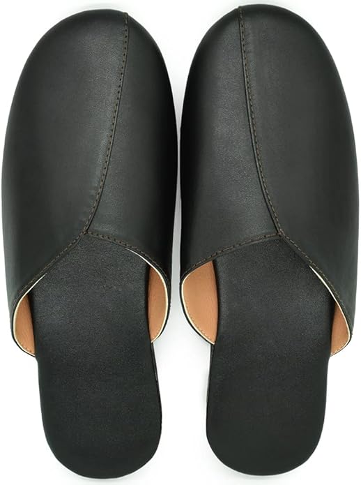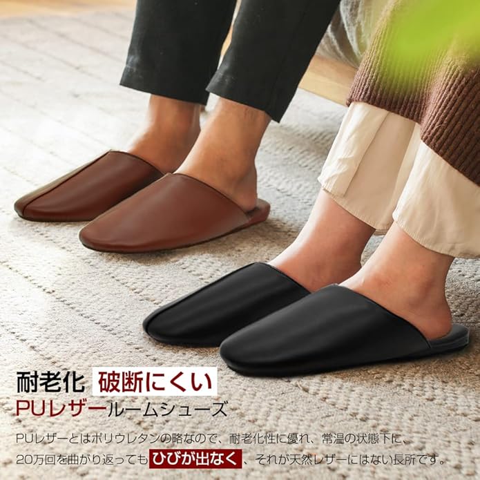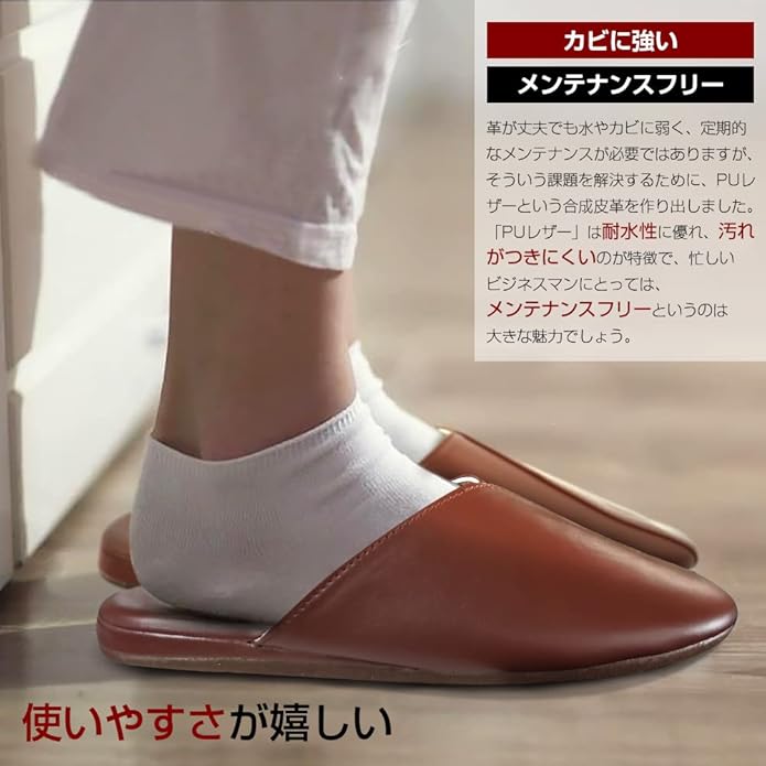 [YAKIDA] オフィス レザースリッパ ルームシューズ 高級 室内履き 汚れにくい 水拭き 静音 滑り止め 業務用 来客用 携帯用 オールシーズン