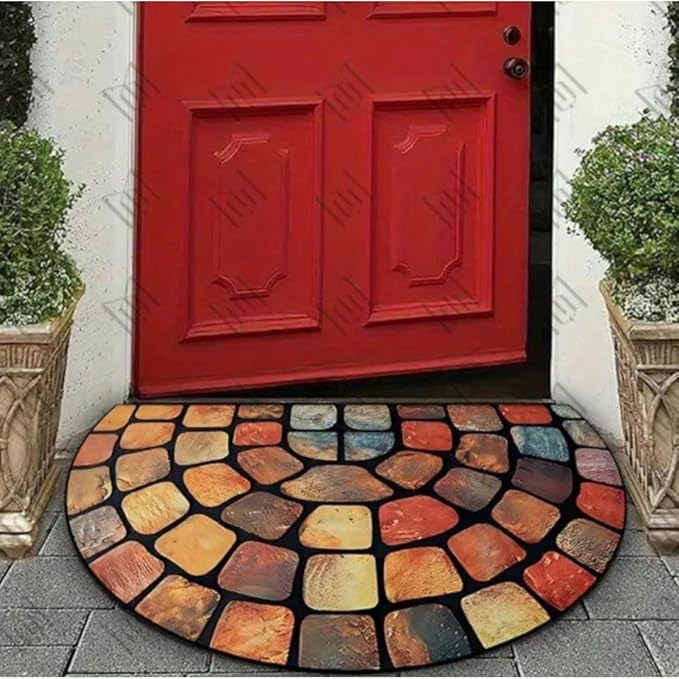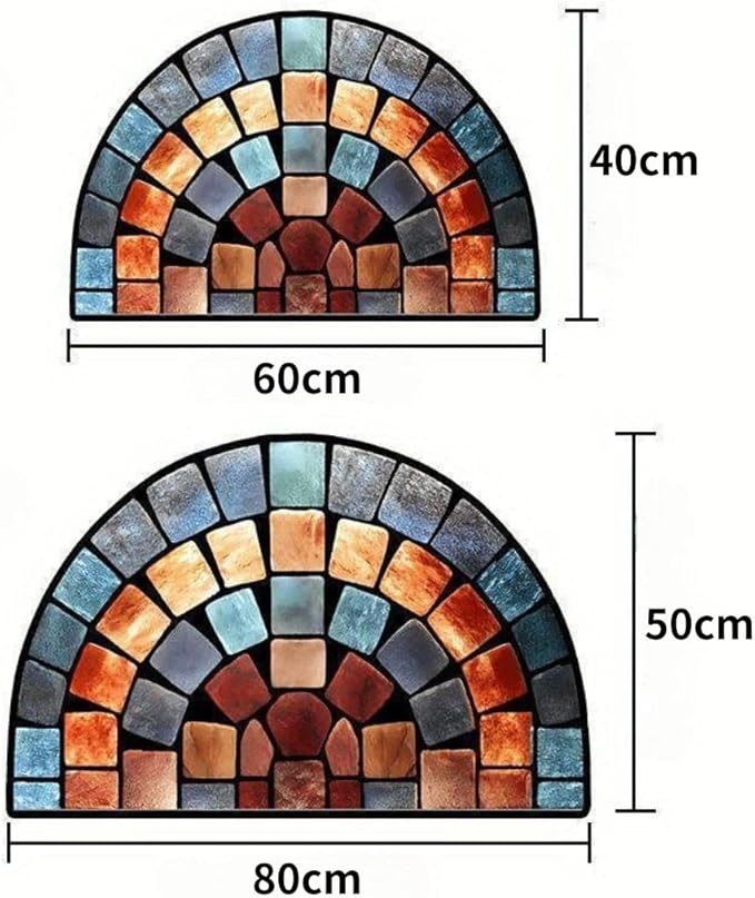 ラグ 半円 玄関 マット 石畳 カラフル 北欧風 エントランス 泥落とし 滑り止め フロア 保護 (オーロラ, 50 80cm)