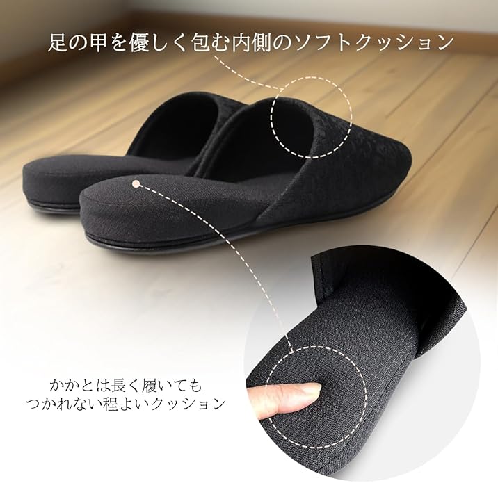 【高級感のあるデザイン】きちんとしたシーンに似合う フォーマルスリッパ!足元からきちんと感を演出できます!高級感のあるドビー織の日本製素材を使用。お父様やお子様とお揃いで統一感のある足元を!