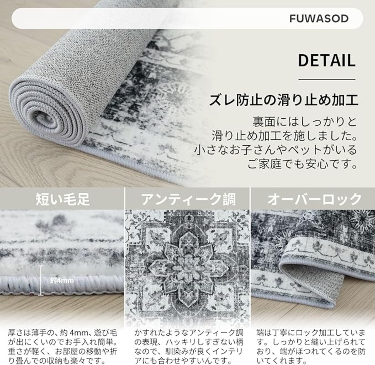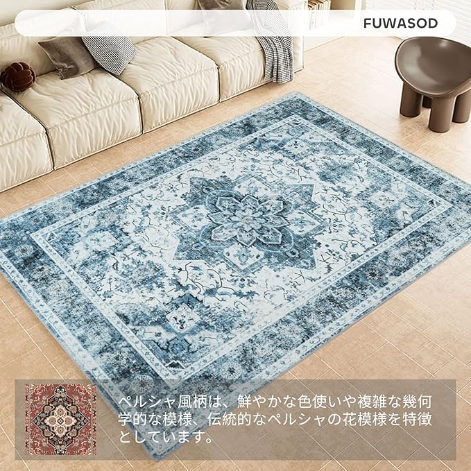 【ペルシャデザイン】ペルシャ風柄は鮮やかな色使いや複雑な幾何学的な模様、伝統的なペルシャの花模様を特徴としています。繊細で美しい柄のペルシャ絨毯風ラグを一枚敷くだけで、お部屋をパッと華やぐ空間へ変えてくれます。リビングルーム、ベッドルーム、キッチン、玄関など様々なシーンで活躍いただけます。