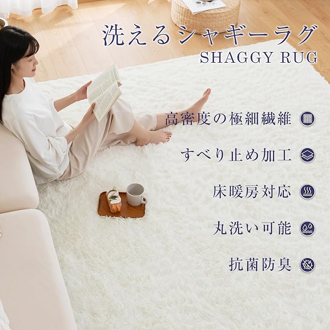 【夏涼しく・冬暖かいオールシーズン対応】通気性に優れたマイクロファイバー採用で夏はサラッと快適。耐熱加工済みでホットカーペット/床暖房対応の冬仕様。35mmのふわふわパイルが足元を優しく包み込み、一年中リラックス空間を創出します。