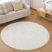 Matdeco シャギーラグ 円形 直径120cm 丸洗い可 防音 滑り止め付 ホットカーペット対応 ふわっと柔らかい 高密度 オールシーズン リビング用 じゅうたん カーペット 北欧風 無地ホワイト 軽量 通気性良