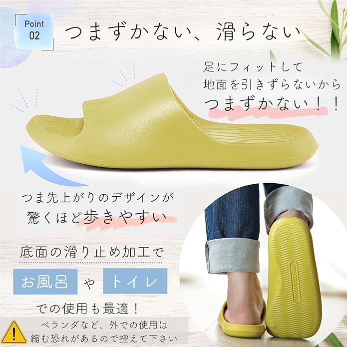 【超軽量設計】EVA素材を使用しており、驚くほどの軽さを実現しています。足への負担を軽減し、長時間履いていても疲れにくいので、家事をする際やリラックスタイムにも最適です。軽やかな履き心地をお楽しみください。