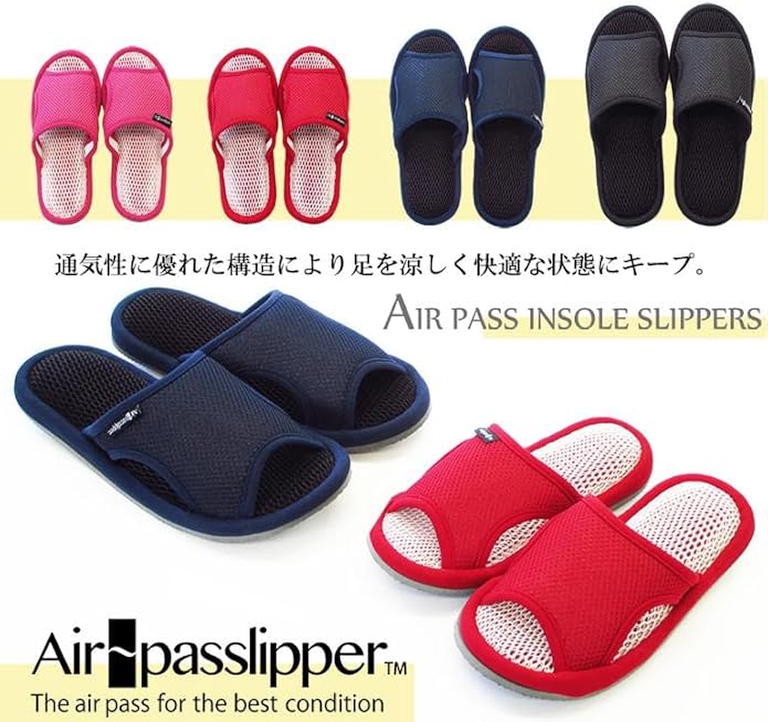 【素材説明】 甲/ポリエステル 中敷/ポリエステル 底/EVA樹脂 ☆この暑い夏に心地良い風が通るふしぎなスリッパが登場しました♪☆歩くたびにインソールポンプがこもった空気を押し出してくれる軽量スリッパ♪