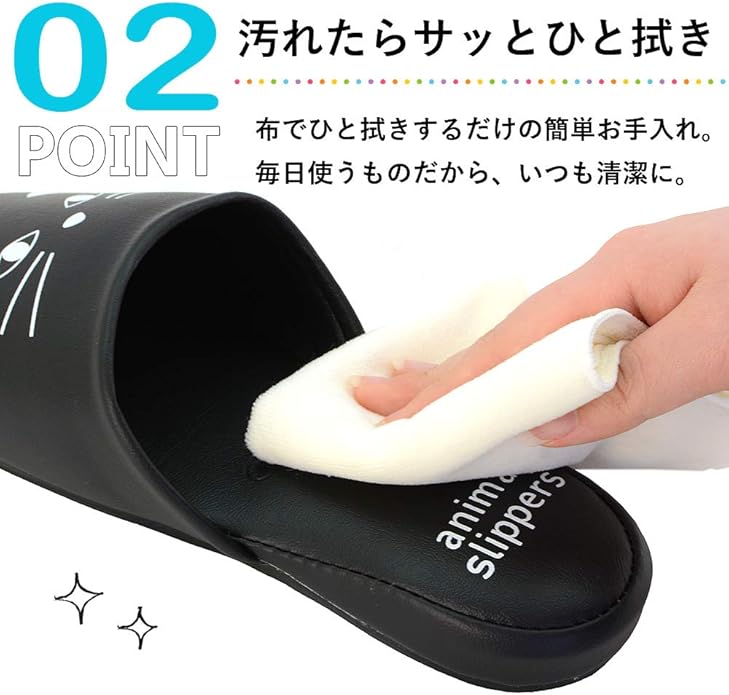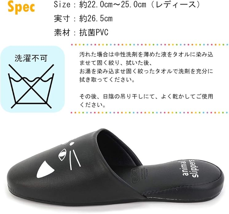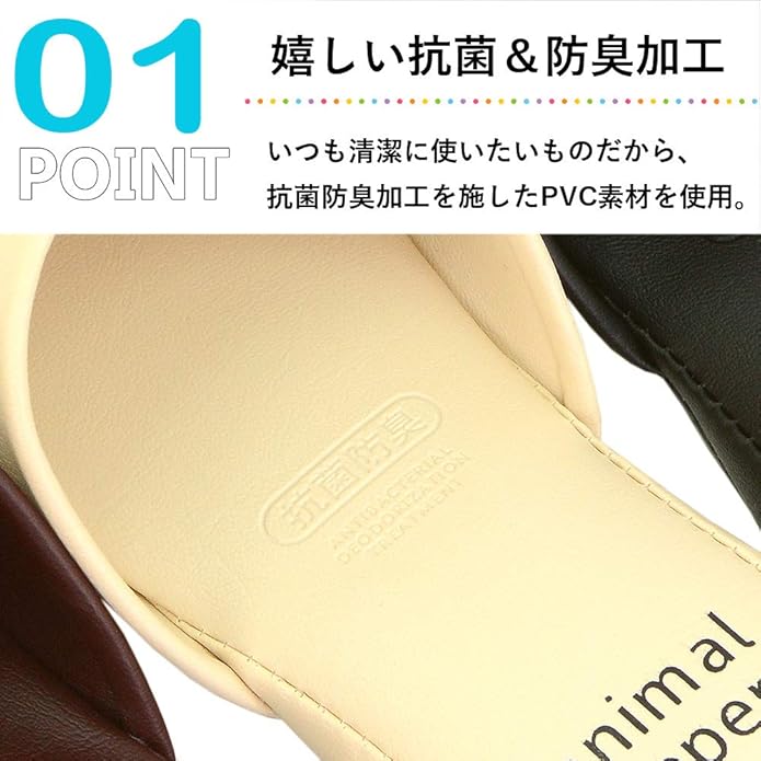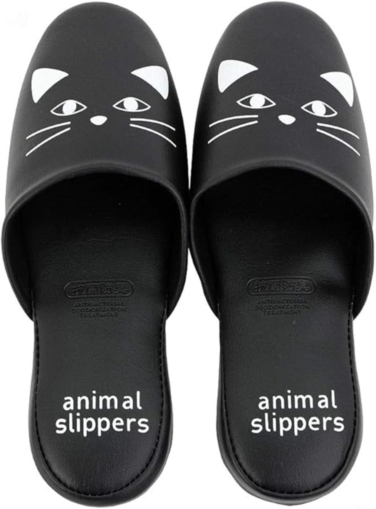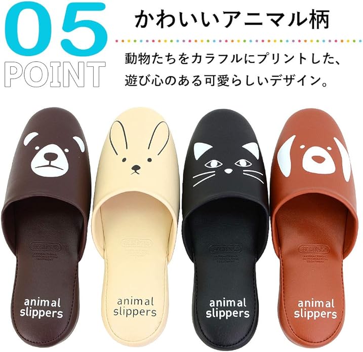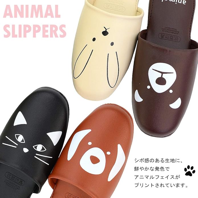かわいいアニマルフェイスがプリントされた抗菌スリッパ。