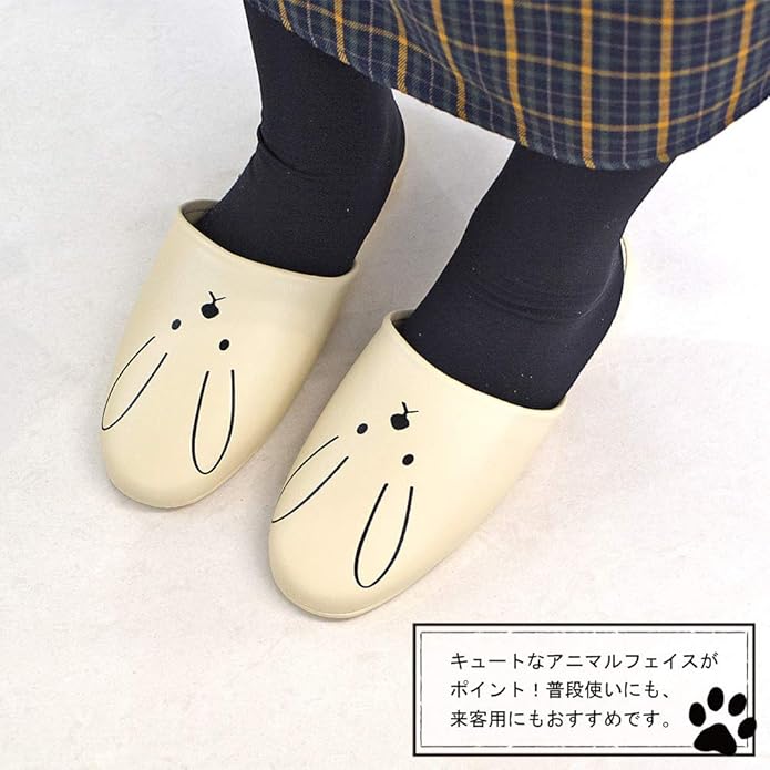 [ラガルト] スリッパ アニマル柄 抗菌 防臭 フリーサイズ トイレ キッチン 洗面所 はっ水 拭ける おしゃれ 室内スリッパ トイレスリッパ ビニールスリッパ うさぎ イヌ くま ネコ お手洗い レストルーム レディース 男女兼用 カカトふっくら履きやすい