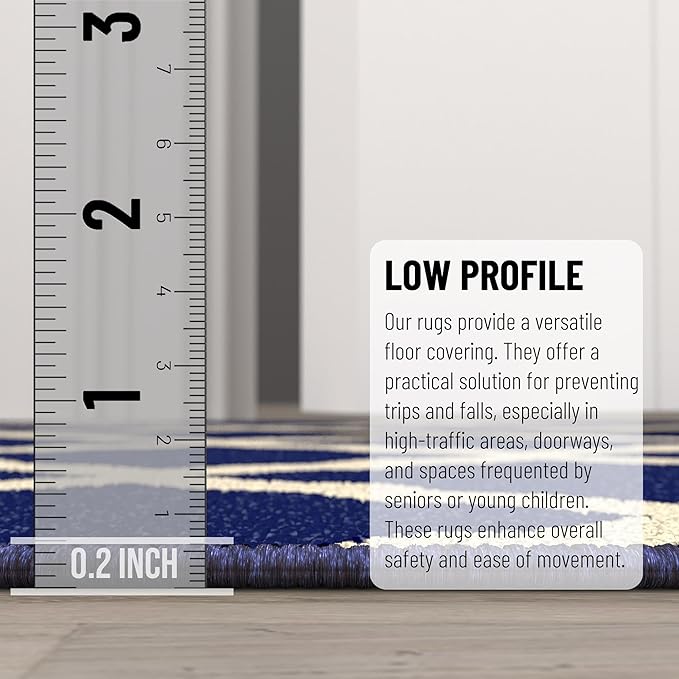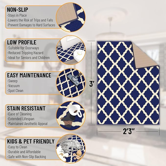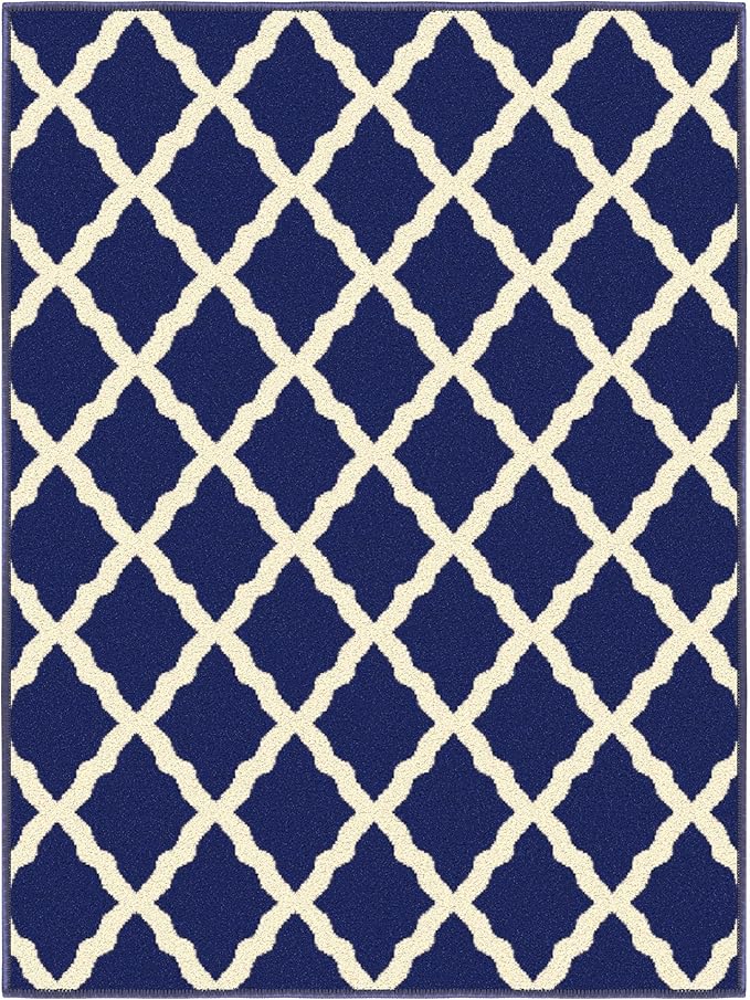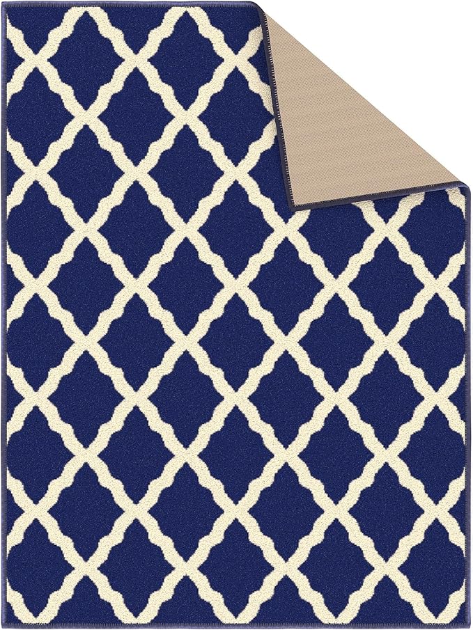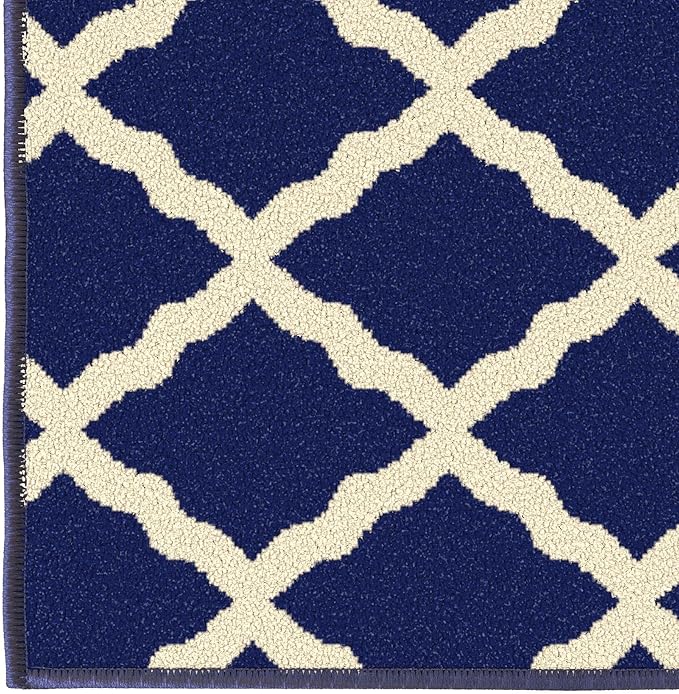 オットマンソン(Ottomanson) アクセントエリアラグ/マット カーペット お手入れ簡単 オシャレ トルコ製 ペルシャ風 滑りにくい 玄関 トレリスデザイン ネイビー 裏面ゴム 69 91cm 【日本正規輸入品】
