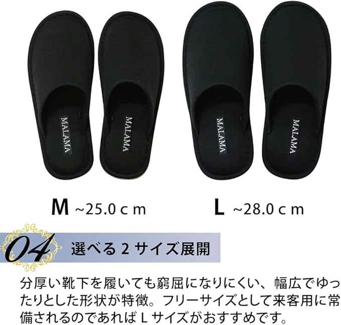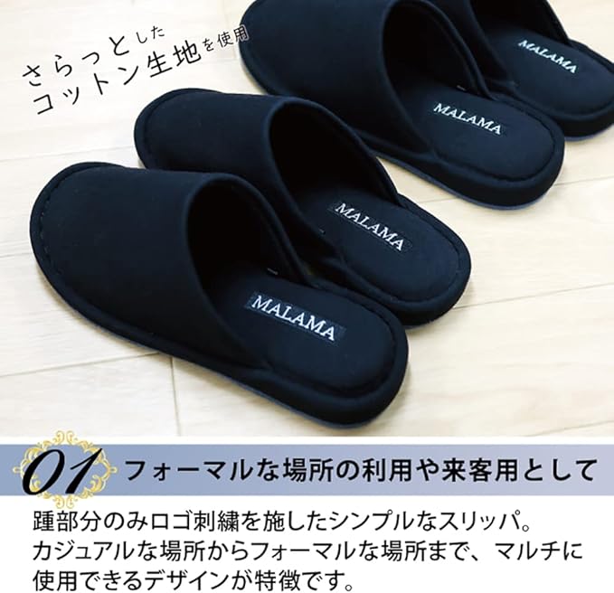[MALAMA] フォーマルスリッパ (L:約25.0~28.0cm/ブラック) 洗濯可 低反発インソール [来客用/会社/事務所/学校] 洗えるスリッパ 紳士用 SCS-00666