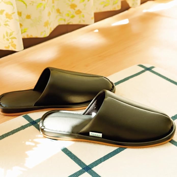 消臭 レザー調スリッパ 備長炭繊維 つま先ゆったり 拭きやすい 303531 ベージュ フリーサイズ メンズ レディース ニッポンスリッパ ルームシューズ 拖鞋