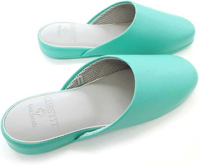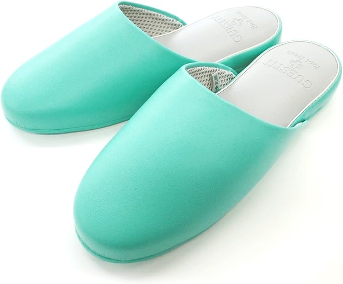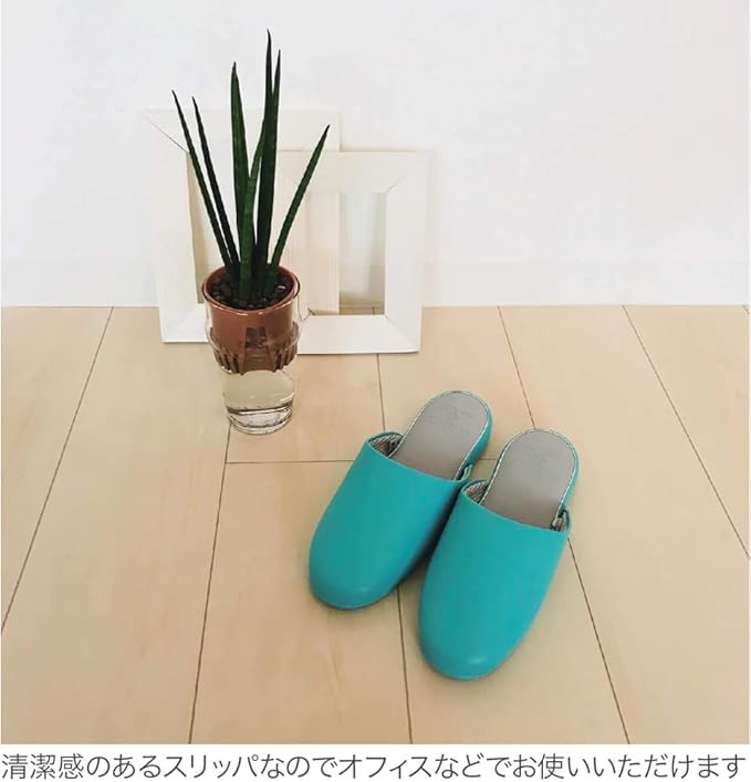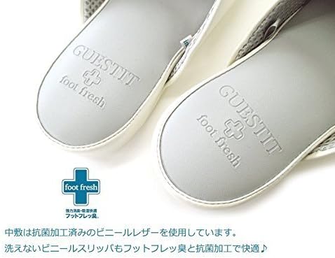 来客に便利なビニールレザースリッパ上品なパステルカラーのシンプルで飽きのこないデザイン甲の裏は消臭除湿に優れておりメッシュ素材でサラサラ快適、ニオイも安心中敷の生地には抗菌加工が施されており不特定多数が履かれるシーンにおススメ