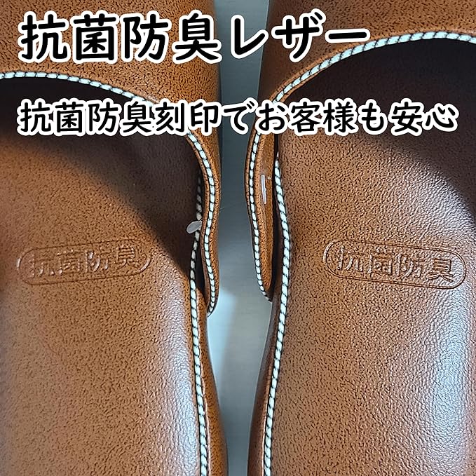 汚れも拭き取りやすい素材なので、複数の人が履くシーンでも安心。抗菌加工でソールに抗菌加工の打刻あり。来賓 来客 の方も安心して使えます。