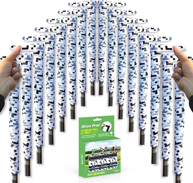 Alien Pros ゴルフグリップラッピングテープ (16本パック) - 革新的なゴルフクラブグリップソリューション - 1分以内で新鮮なグリップ感をお楽しみください (16本パック、ブラックホワイトテリス) 詰め替えの手間がついに終わりました: Alien Pros Golf Gripラッピングテープを使えば、剥がして包んで密封することができます溶剤やキットは必要ありません いつでも好きな場所に再グリップできます もう店舗への訪問は必要ありません 1 分未満で、お好みのスタイルで機能的なゴルフクラブグリップを手に入れることができます 既存のグリップの上に - 実感してロック: 世界中の何千人ものゴルフ選手によって証明された新しいリグリップソリューション 新しいグリップは汗吸収性と滑り止めのため、手袋を着用しないで遊ぶこともできます また、あらゆる気象条件で機能し、長期間使用できます Alien Prosで気に入っても、返金してもらえます当社はGalaxyで最高のグリップソリューションになるよう努めていますお客様の製品に101%ご満足いただけない場合は、当社にご連絡ください ユニークなスタイルを自慢しましょう: すべてのゴルフクラブが同じように見えることにうんざりしていませんか? 当社の製品で、あなたが誰であるかを語る新鮮な新しいクラブスタイルを選ぶことができます もし気が変わったら、いつでもどこでも自分で再握るだけ! 16個入りパックすべてのクラブとサイズに対応: 写真に示されているパターンのゴルフグリップラッピングテープ16本入り 幅1インチ、長さ47インチ、厚さ0.05インチ 各グリップは高い吸収性と超軽量素材で作られており、すべてのクラブとサイズに対応 - ラップ時にオーバーレイ部分を調整して、グリップの長さと厚さをコントロールできます