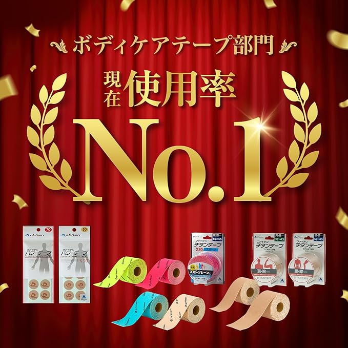 「ボディケアテープに関するアンケート」において、ボディケアテープ部門 現在使用率No.1に選ばれました。 調査主体:ファイテン株式会社 調査実施機関:株式会社インテージ 調査方法(抽出フレーム):インターネット調査(マイティモニターよりランダムに抽出) 調査実施時期:2024年11月28日(木)~2024年12月5日(木) 調査地域・対象者条件:全国男女15~69歳 サンプルサイズ:n=10,000s