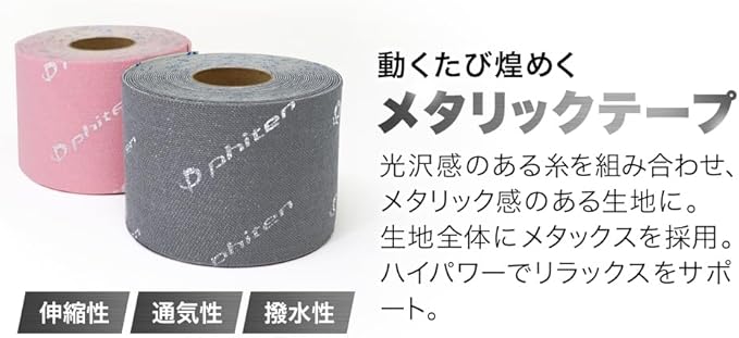 ファイテン(phiten) メタックステープ ロールタイプ 伸縮タイプ 5.0cm 4.5m メタリックテープ メタックス採用 関節・筋肉ケア 撥水性 通気性 日常使い スポーツ対応 はがれにくい テーピング
