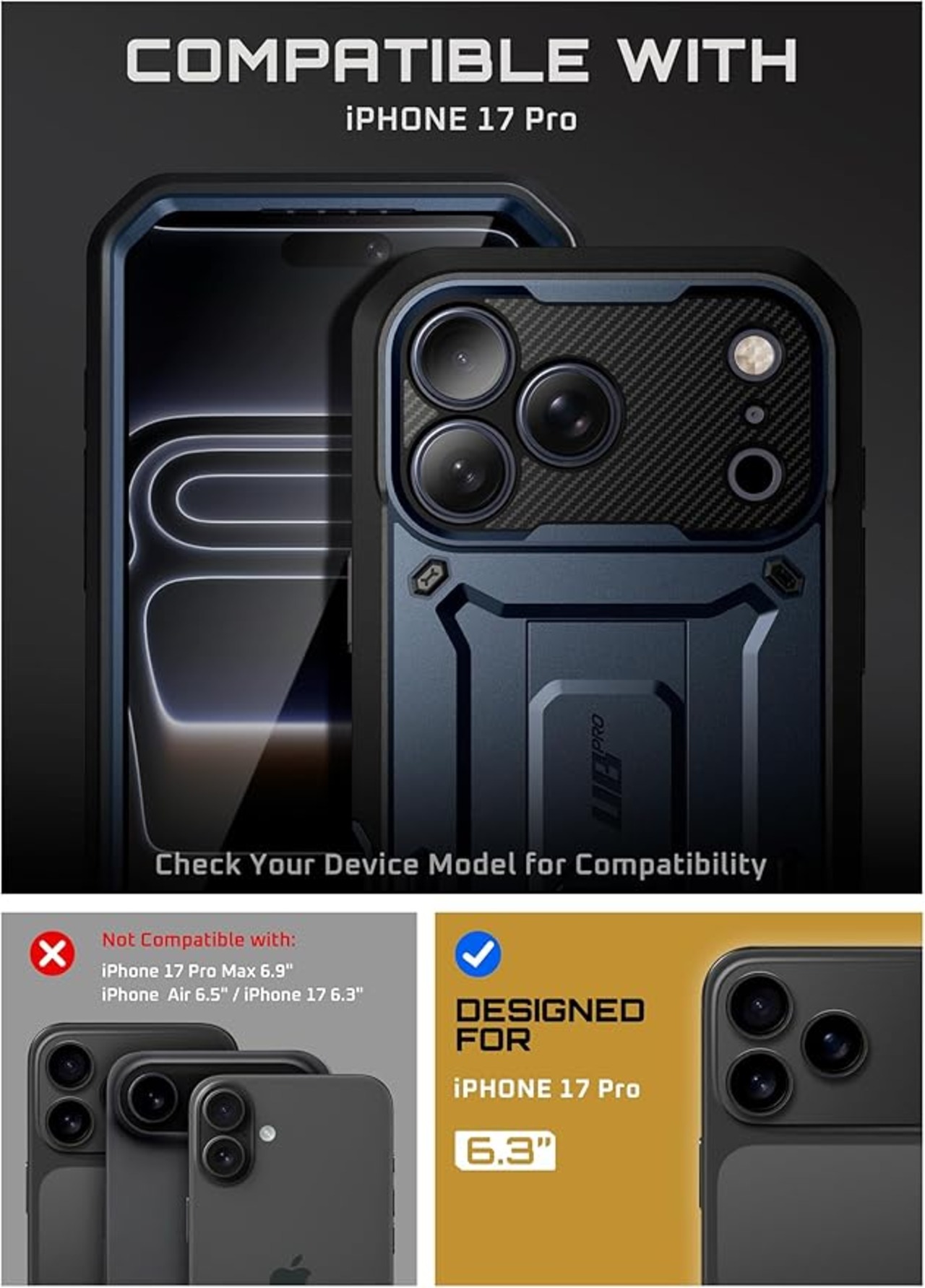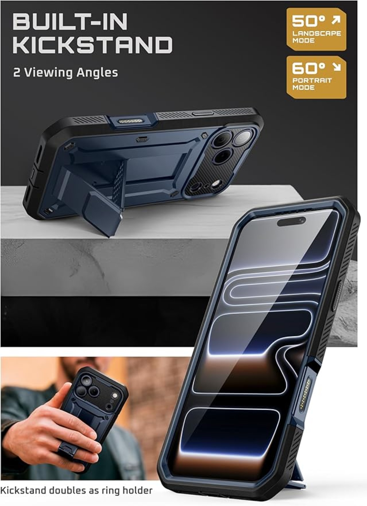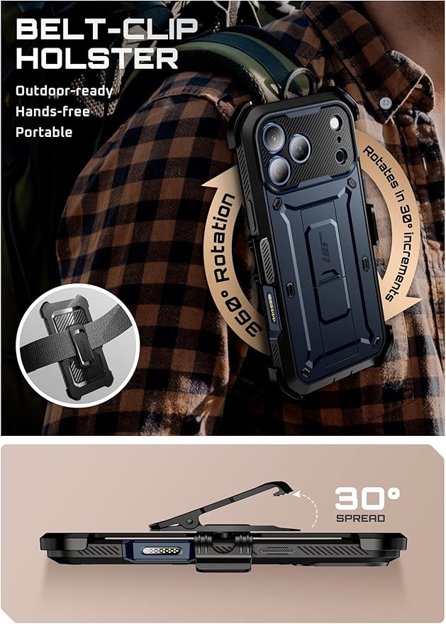 SUPCASE iPhone 17 Pro ケース 2025 耐衝撃 米軍事規格保護 両面カバー 保護フィルム付き 高耐久性 腰かけクリップ付き 防塵 スタンド・リング機能 UBProシリーズ