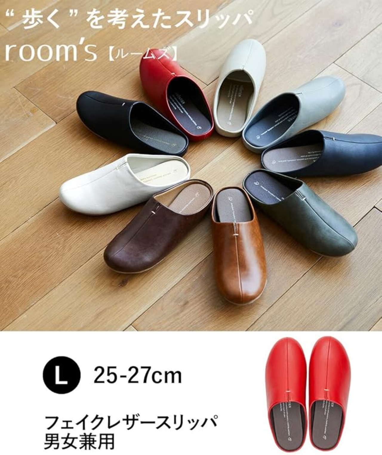 ■ご使用にあたっての注意事項 / ・ご使用上の注意を必ずお読みいただき、正しくお使いください。 / ・閲覧環境によっては色の出方が異なる場合がございます。 / room'sシリーズは本体内部にテキソンボードというボール紙のような土台紙を使用しております。 / その土台紙が濡れてしまうと強度が低下するので洗えない商品でございます。 / ただし、room'sの合皮部分、本体内部、インソール、外底は固く絞った布等で水拭き可能です。
