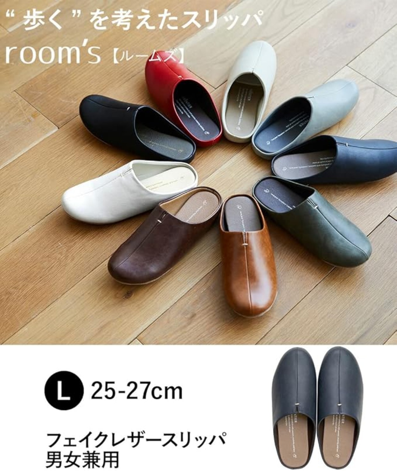 ■ご使用にあたっての注意事項 / ・ご使用上の注意を必ずお読みいただき、正しくお使いください。 / ・閲覧環境によっては色の出方が異なる場合がございます。 / room'sシリーズは本体内部にテキソンボードというボール紙のような土台紙を使用しております。 / その土台紙が濡れてしまうと強度が低下するので洗えない商品でございます。 / ただし、room'sの合皮部分、本体内部、インソール、外底は固く絞った布等で水拭き可能です。
