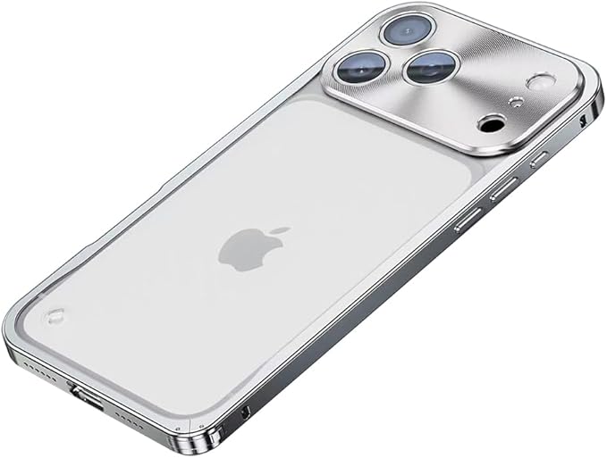 【アルミ合金フレーム 】 For iPhone17 ProMax ケース 自動バックル式 カメラレンズ保護 半透明マットタイプ ワイヤレス充電対応 指紋防止 衝撃吸収 アイフォン17 プロマックス用カバー スマホケース ストラップホール付き cs104 (i17promax, シルバー)