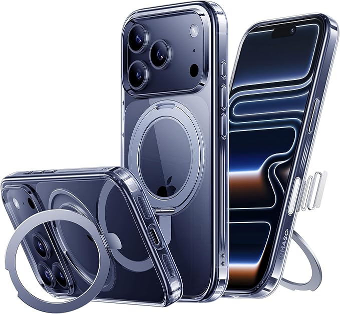 NIMASO iPhone 17 Pro 用 ケース 縦横両対応 360 回転スタンド いphone 17 Pro 対応 カバー MagSafe対応 携帯スマホケース リング付き 耐圧設計 マグネット搭載 カメラコントロールボタン付き 米軍MIL規格 耐衝撃 傷防止 指紋防止 黄变防止 クリアケース (氷星シリーズ)NSC25F1683
