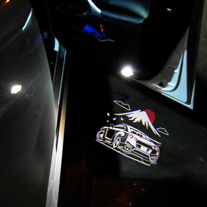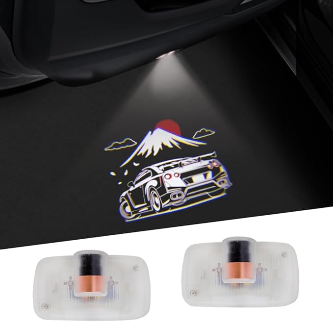GTRカーテシランプ 車用ドアランプドアウェルカムライト カーテシLEDロゴ投影 工具付 適応GTR r35 r34