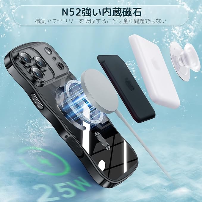 【強力なマグネット充電】:38個の高品質N52マグネット(磁力2400gf)を搭載したこのiPhone 17 Pro ケースは、一般的なマグネットケースの7倍の強力なホールド力を発揮します。激しく振り回しても外れません。マグネット式充電器、カーマウント、財布など、すべてのMagSafeアクセサリーに対応しています。