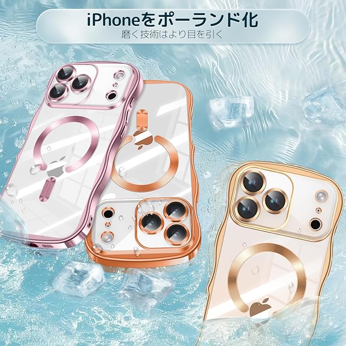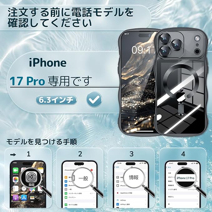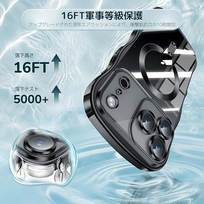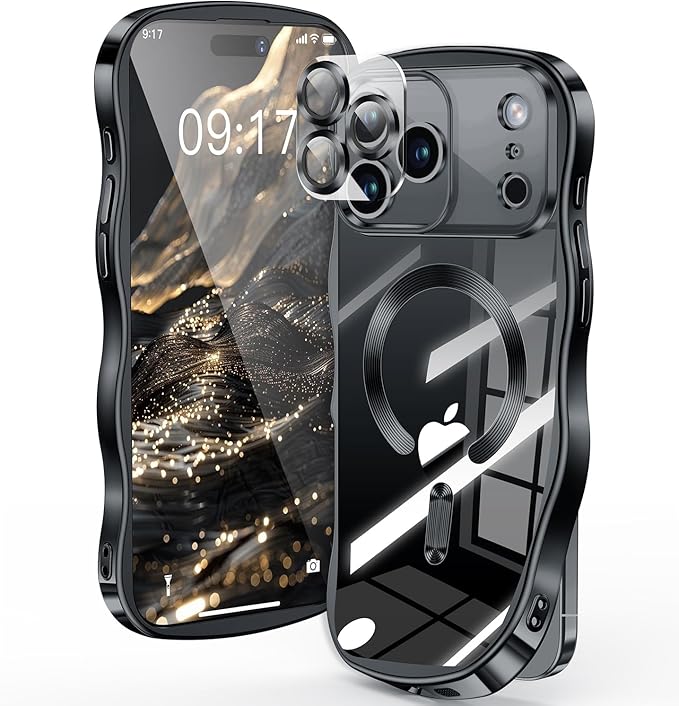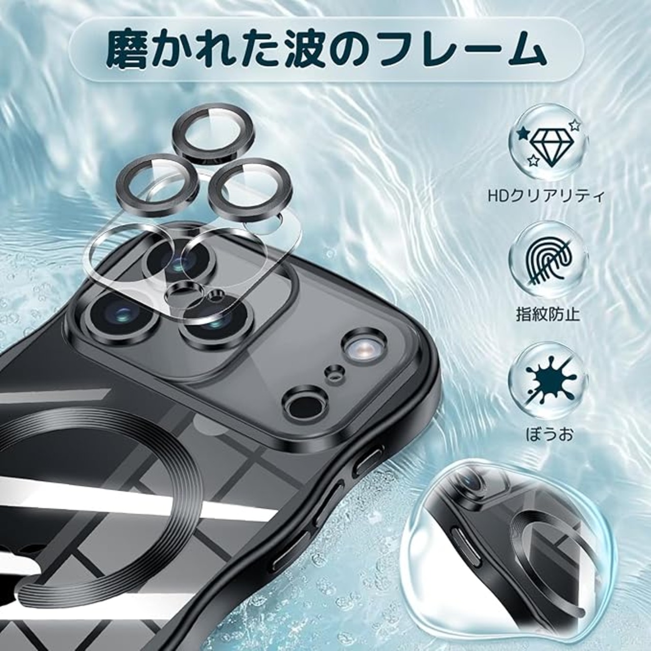 【米軍進化耐久・CDリング・キュートなウェーブエッジ】iPhone 17 Pro ケース 【カメラ全面保護】【MagSafe対応】カメラフィルム 強力マグネット 衝撃吸収 TPU+PC メッキ加工 ソフト 黄ばみ防止 クリアケース iPhone 17 Pro 6.3インチ 男女兼用 (ブラック)