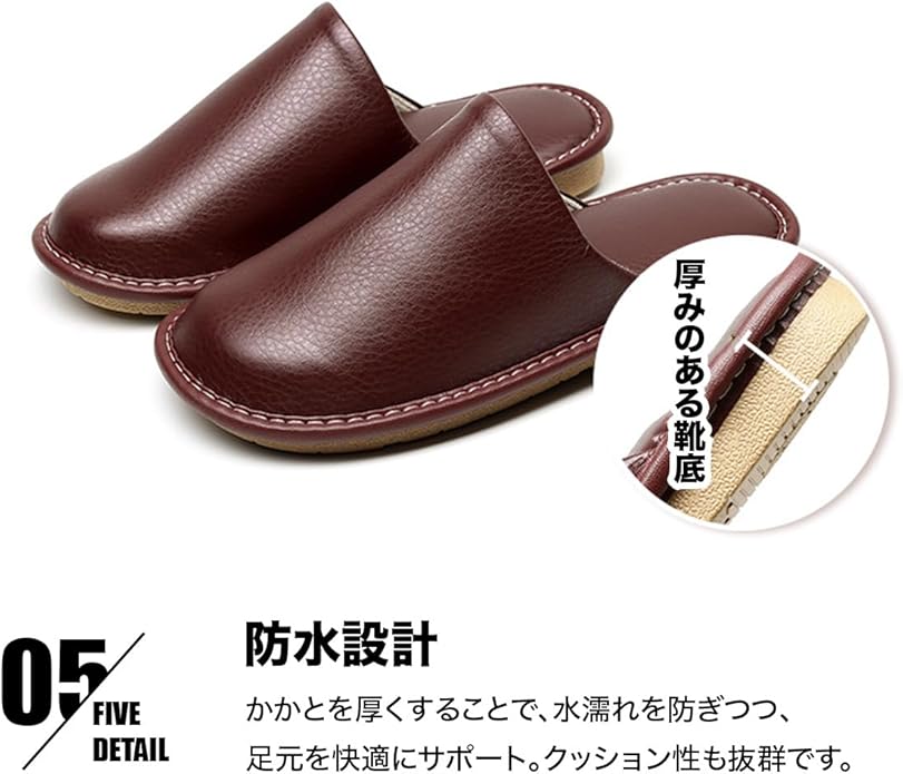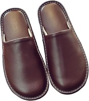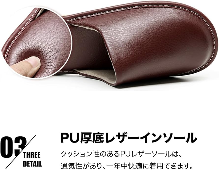 【高級PUレザースリッパ】上質なPUレザーで仕立て、汚れにくく、お手入れ簡単。足元を優雅なひとときに包みます。