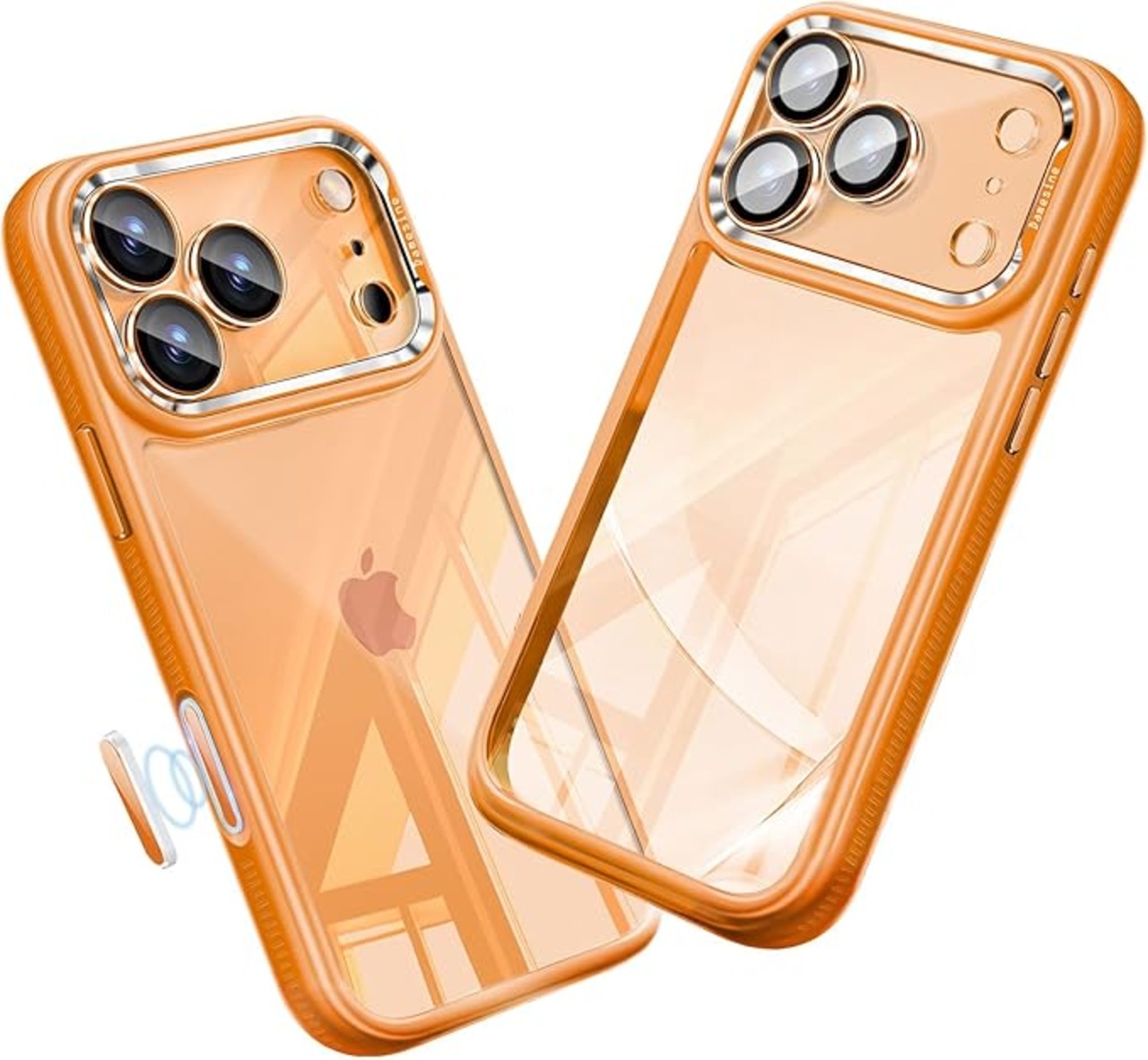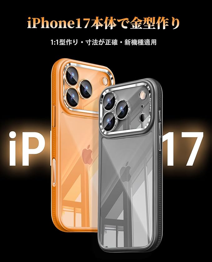 iPhone 17 Pro用ケース クリア シリコンサイド耐衝 撃滑り止め カメラコントロールボタン付き キラキラなカメラカバー着脱可能 オシャレなレンズ保護カバー 薄型 防塵ネット かわいい アイフォン 17プロ ケース オレンジ