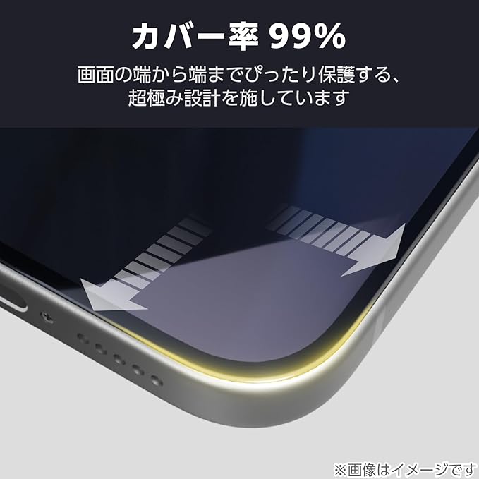 ■画面カバー率99%。超極み設計を採用したブルーライトカットタイプの画面保護ガラスフィルムです。