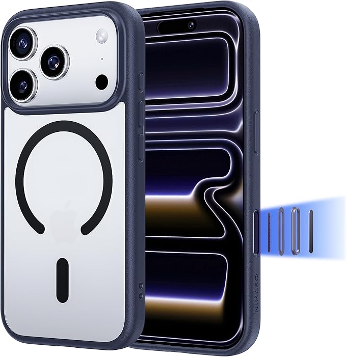 NIMASO iPhone 17 Pro 用 ケース MagSafeアクセサリー対応 スマホケース マグセーフ カバー 滑り止め マット仕上げ 全面保護 いPhone17Pro用 耐衝撃 米軍MIL規格取得 ワイヤレス充電 カメラコントロールカバー ストラップホール付き 携帯スマホケース アイフォン17プロ対応 (6.3インチ) ブルー (黒羽シリーズ) NSC25G1879