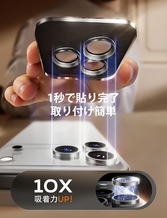【iPhone 17 Pro/Pro Max専用設計】本品はiPhone 17 Pro/Pro Max専用に開発されております。高精度な1:1加工でカメラレンズにピタリと密着し、すき間なく全面保護します。※他機種へのご利用はいただけません。